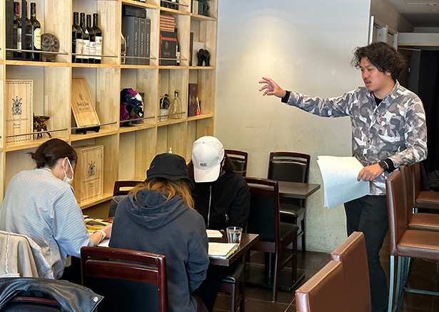 ワイン販売のセミナー。飲食店とのコラボイベントが行え、一緒にイベント企画からワインセレクトまで考えます。